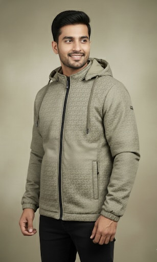• ডিজাইন ও কালার: জ্যাকেটটি একটি সুন্দর বাদামী (Tan/Brown) রঙের এবং এর পুরো বডিতে হালকা জ্যামিতিক টেক্সচার বা প্যাটার্ন রয়েছে।