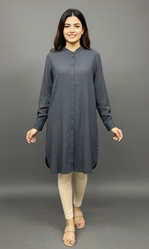 Unique Denim Button-Down Tunic Top