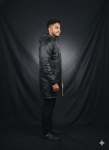 • কালার ও মেটেরিয়াল: জ্যাকেটটি একটি ক্লাসিক কালো (Black) রঙের। এটি মূলত প্যারাসুট বা সিন্থেটিক ফেব্রিক দিয়ে তৈরি, যা বাতাস ও হালকা কুয়াশা থেকে শরীরকে রক্ষা করতে সাহায্য করে।